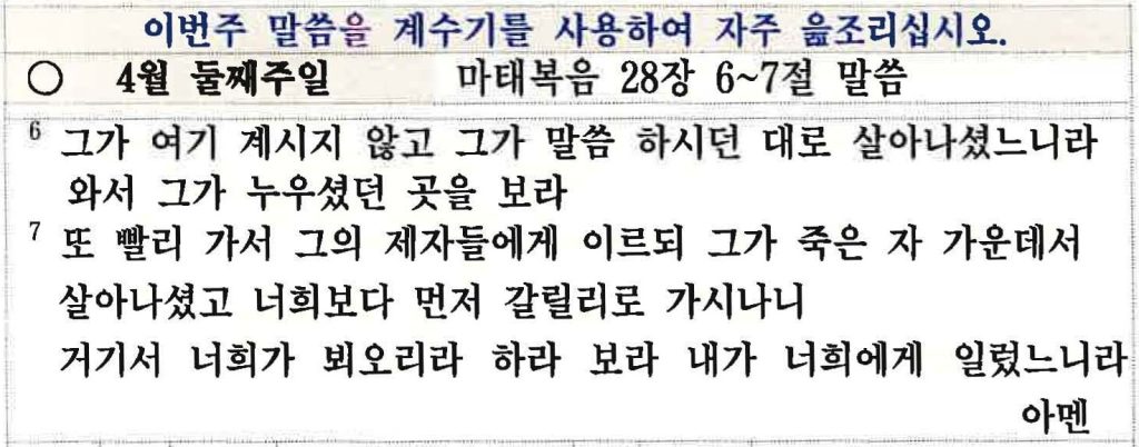 말씀을 읊조리다 보면 말씀이 마음에 새겨지게 되고 다시 그 말씀을 묵상할 수 있게 됩니다